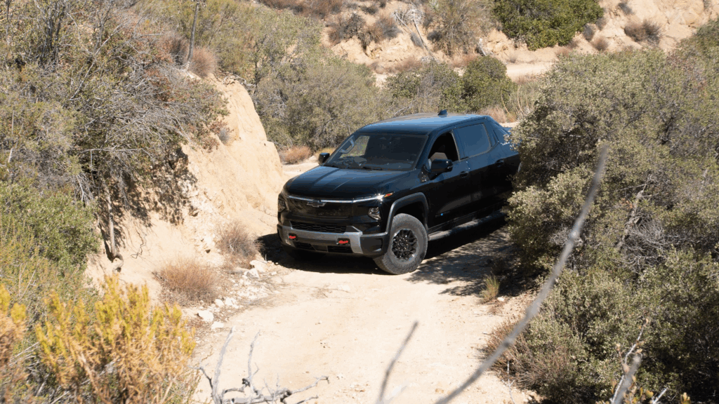 That said, we’re not truly sure if the people Chevrolet says it wants to buy the 2026 Silverado EV Trail Boss will be bothered by the lack of a non-ABS locker. When asked about who they expect those customers to be, every company spokesperson onsite said the truck isn’t meant for hardcore off-roaders but rather for those looking to get out and adventure a bit. In other words, people looking to go hiking or mountain-bike riding on deep trails that don’t have huge boulders or other obstacles to deal with. The most challenging scenario they likely face would be deep ruts cut out by a week’s worth of heavy rain, and that might lift a tire just as we experienced on these trails. If this sounds familiar, then you might have read out First Test on the 2026 GMC Sierra EV AT4 as we came to the exact conclusion that Chevrolet acknowledges here.