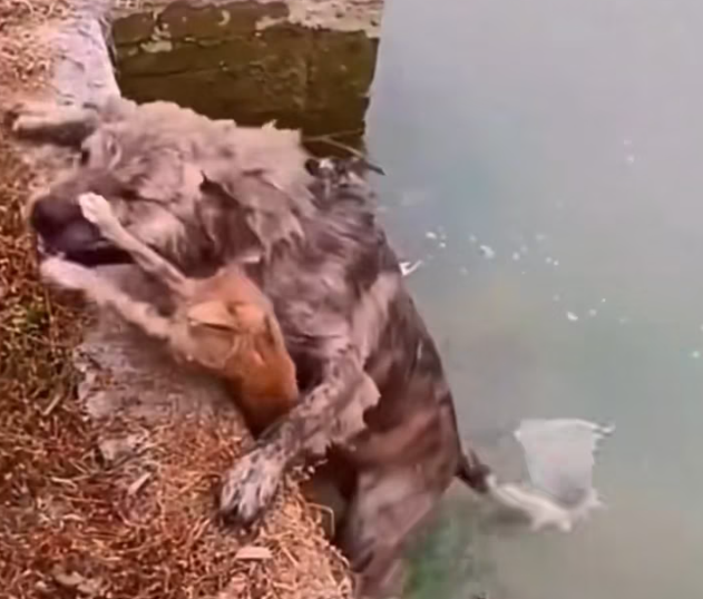 T1812039 Dog rushed into water to save kitten #rescue #animals #animal