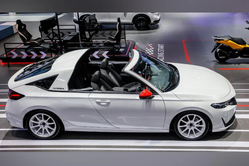 Then there’s the targa top. This isn’t just a sunroof; it’s a substantial, removable panel that transforms the car into an open-air cruiser. The sheer scale of the roof opening suggests a commitment to the targa experience, reminiscent of iconic Japanese sports cars of yesteryear, particularly the beloved Honda Del Sol. The Del Sol, with its TransTop system, was a cult classic precisely because it offered convertible thrills without the structural compromises or stylistic eccentricities of a full ragtop. To see a modern interpretation of this concept on an Integra platform is a powerful blend of retro charm and contemporary execution. Imagine the driving experience: the wind in your hair, the mechanical symphony of the engine, all while retaining a degree of structural rigidity and security often lacking in traditional convertibles. It’s a potent combination, targeting a very specific, deeply passionate segment of the market. This kind of “targa top technology” could offer an interesting middle ground for future “performance car market 2025” innovations.