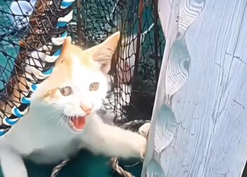 T0402030,Tears fell as the cat was finally pulled from danger #AnimalRescue #Hope